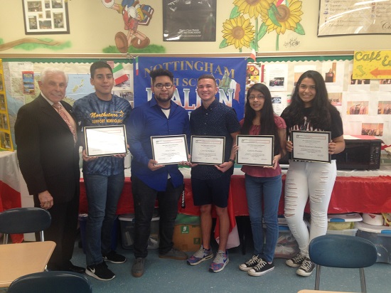 Congratulations to the five Nottingham High School Italian students, in Professor Campione’s classes who have been awarded the Coccia Foundation’s annual Italian studies award! Each student received a Certificate of Merit along with a monetary award for their commendable achievements in learning the Italian language and its culture. NJIHC is proud to have Professor Campione on its Board of Academic Advisers and appreciates his commitment to the next generation.